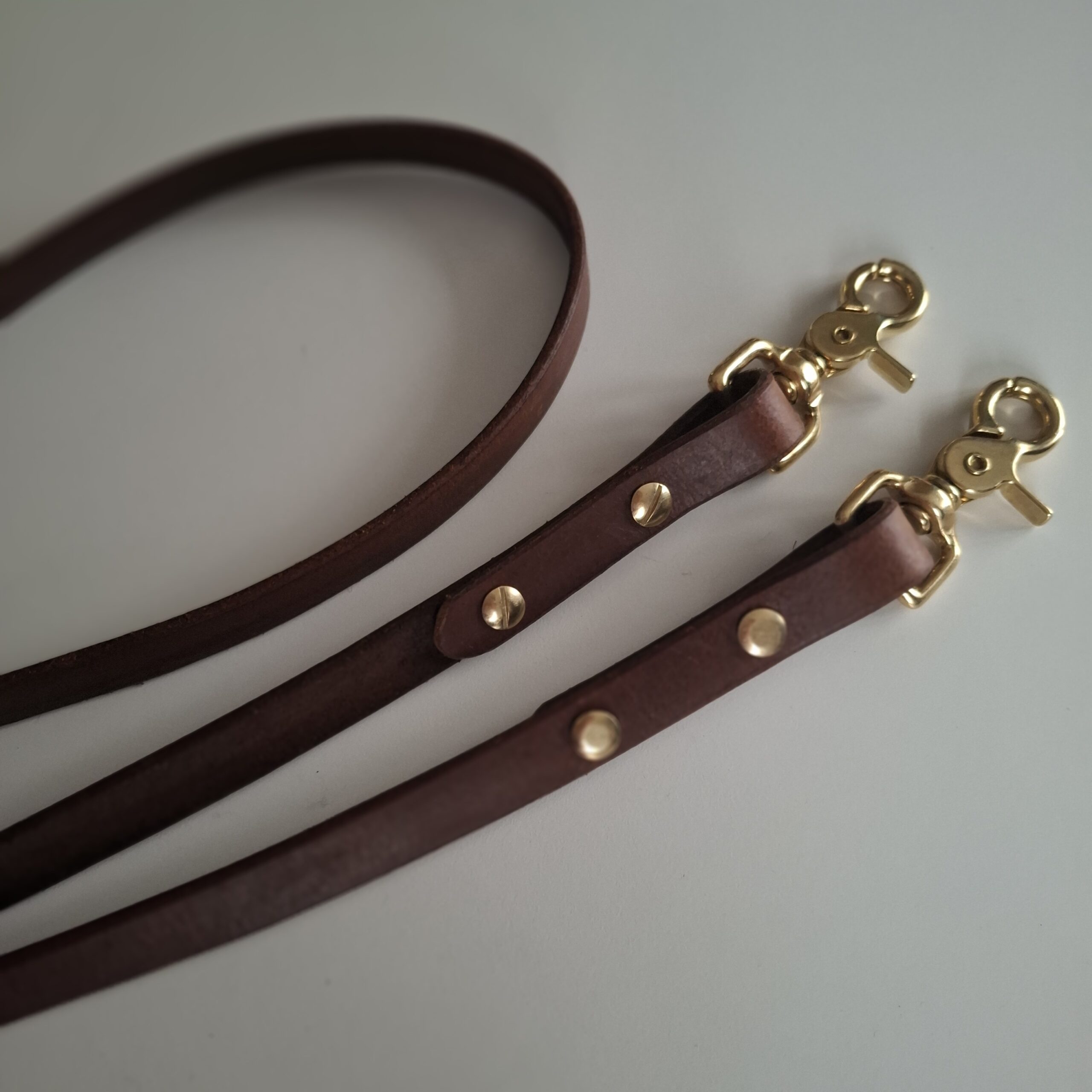 Wodze treningowe wykonane z ciężkiej liny poliestrowej o urozmaiconej kolorystyce, zakończone z jednej skórzanymi łącznikami* oraz karabińczykami (istnieje możliwość wymiany zwykłych karabińczyków niklowanych na karabińczyki ze stali nierdzewnej lub mosiężne), a z drugiej skórzanymi popperami. Wodze dzielone o długości 2x 2,2m Można z powodzeniem używać ich zarówno do haltera jak i do wędzidła czy ogłowia bezwędzidłowego. Na zamówienie możemy wykonać inne długości wodzy.