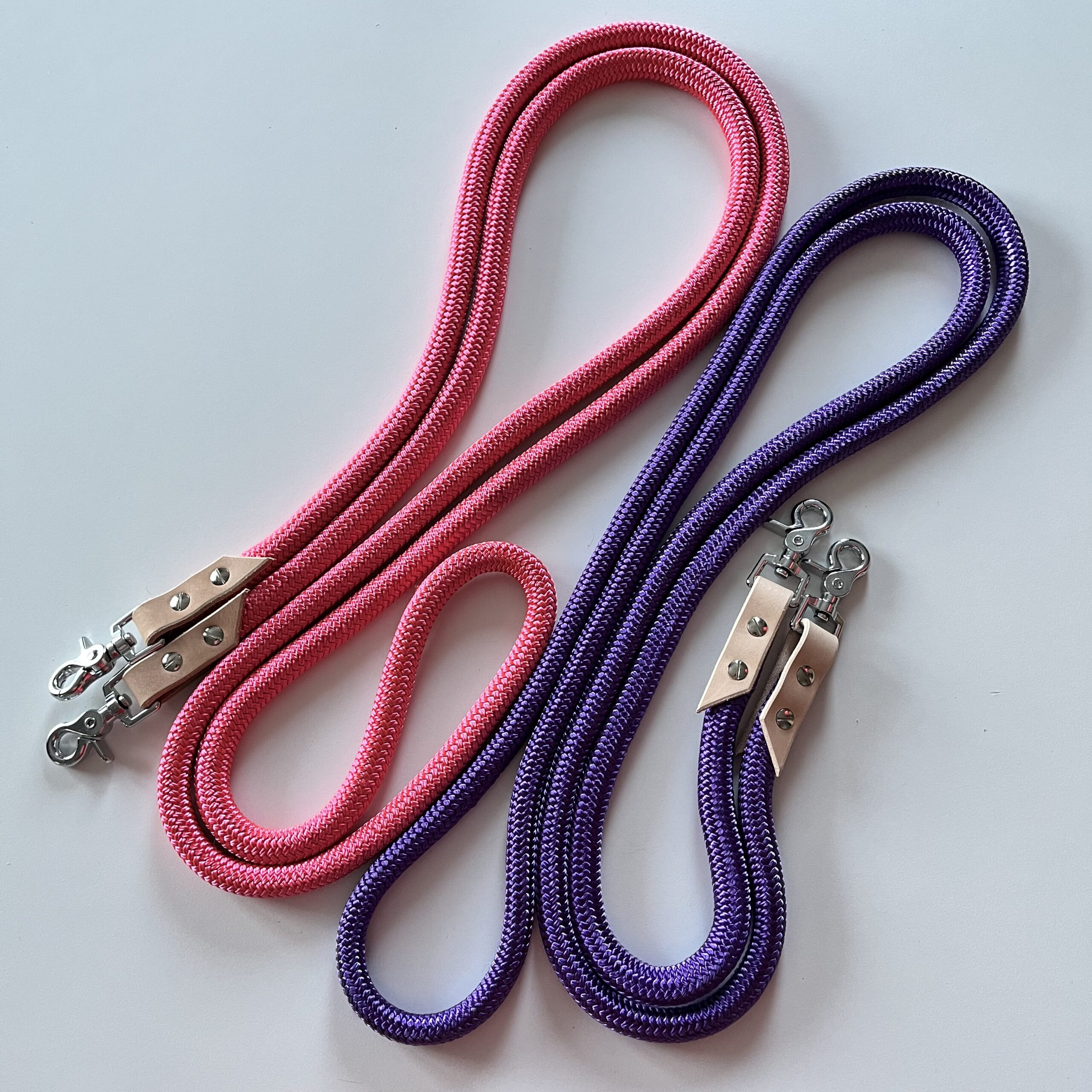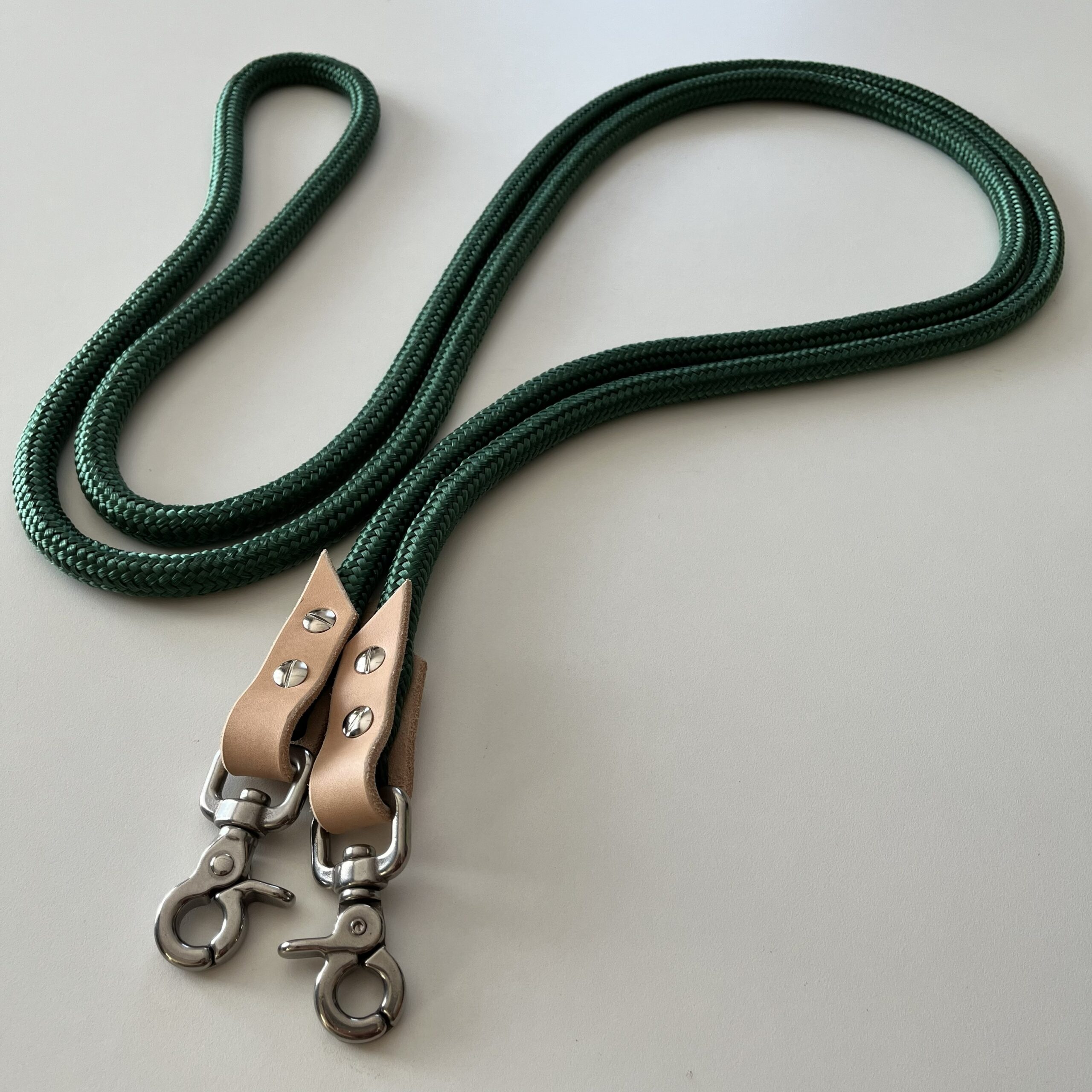 Wodze treningowe wykonane z ciężkiej liny poliestrowej zakończone skórzanymi łącznikami* oraz karabińczykami (istnieje możliwość wymiany zwykłych karabińczyków niklowanych na karabińczyki ze stali nierdzewnej lub mosiężne). Można z powodzeniem używać ich zarówno do haltera jak i do wędzidła czy ogłowia bezwędzidłowego. Na zamówienie możemy wykonać inne długości wodzy.